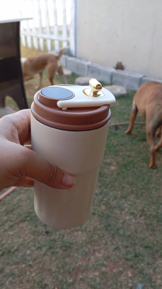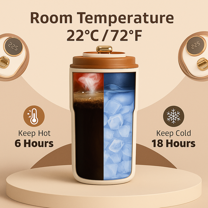 A: Our LED touch screen on the lid shows your drink’s live temperature with a single tap. No guesswork, no burnt sips — just perfect coffee every time.
